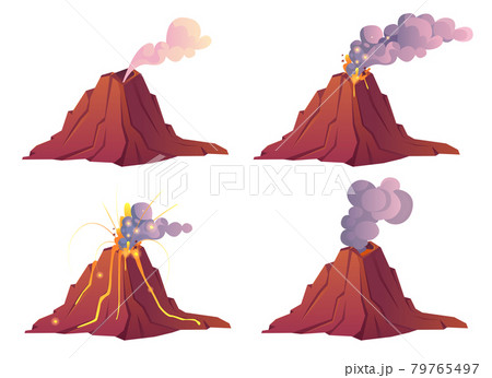 火山噴火のマグマ煙灰は白い背景で隔離を設定します火山活動溶岩噴火睡眠と噴火火山 フラットのベクトル図 アイコンのベクターアート素材や画像を多数ご用意 Istock